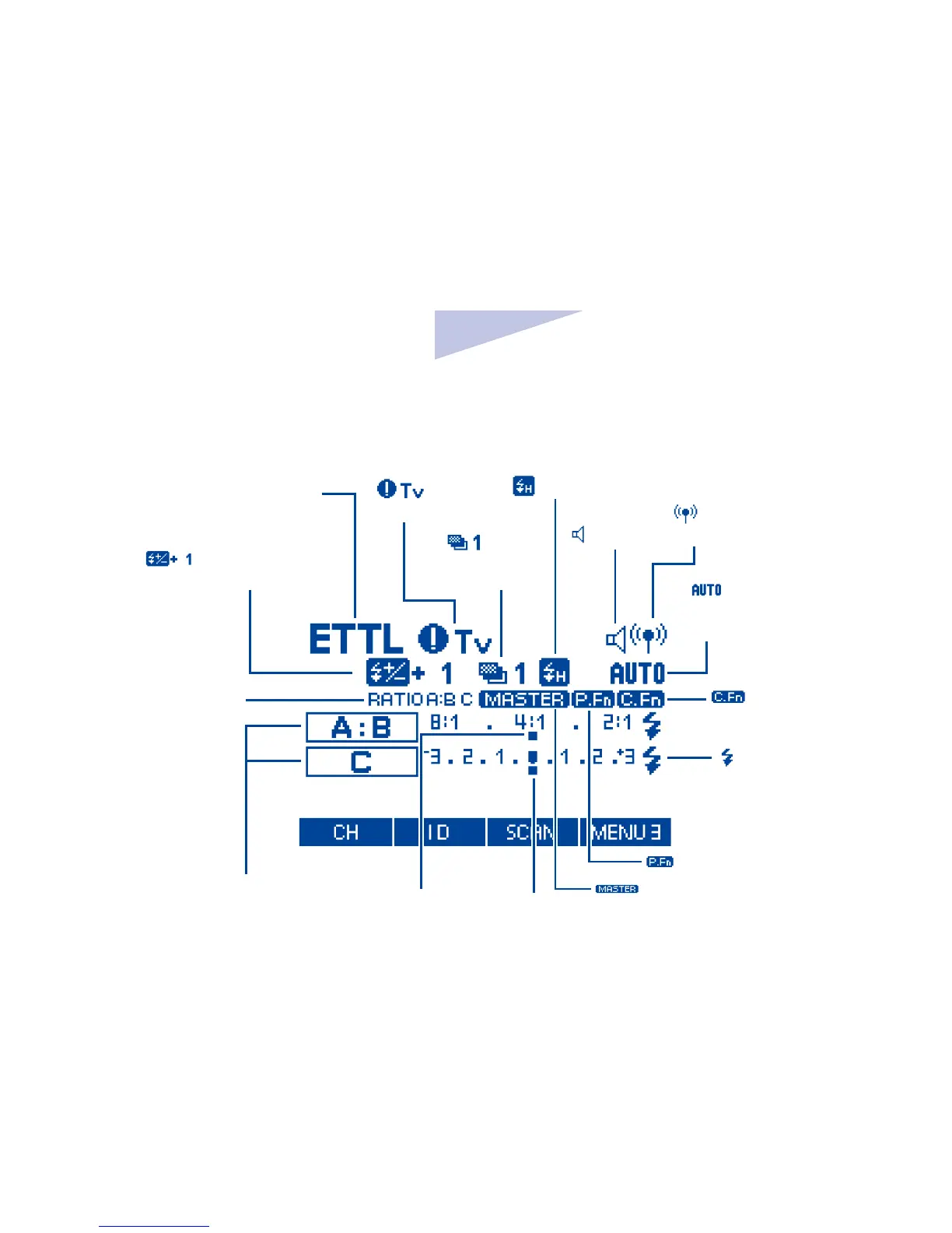 1. ETTL/ETTL II 自動閃光模式顯示: