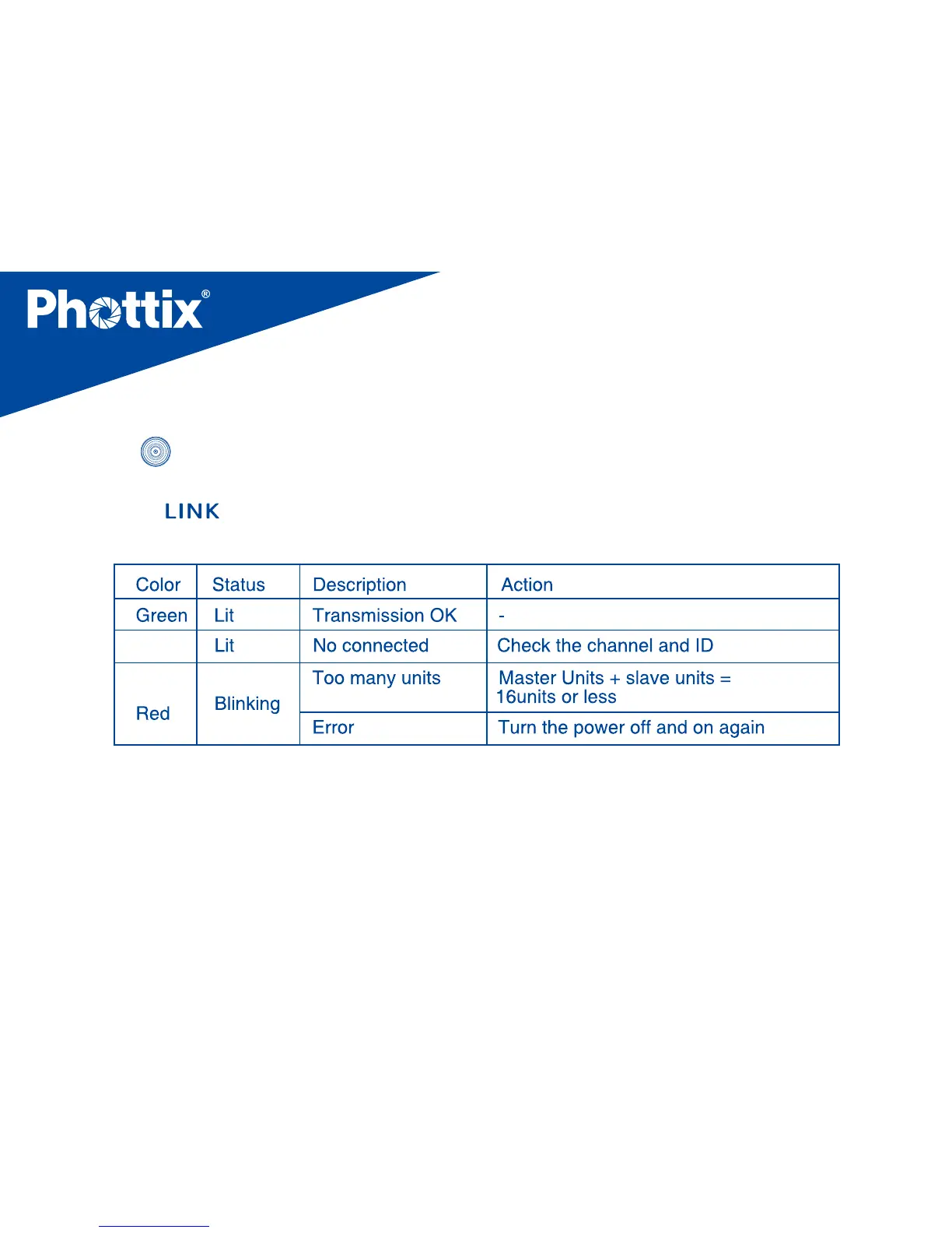 2 If the wireless radio IDs of the master unit and slave unit are dierent, the slave unit will not