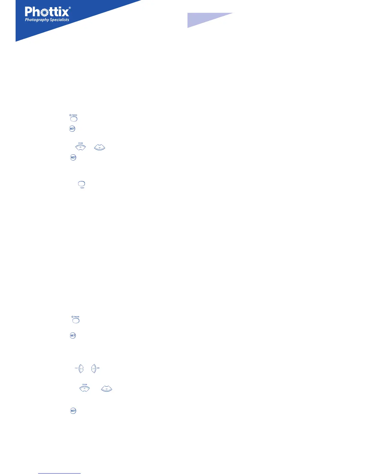 El número, frecuencia y potencia de destellos se puede programar en el Phottix