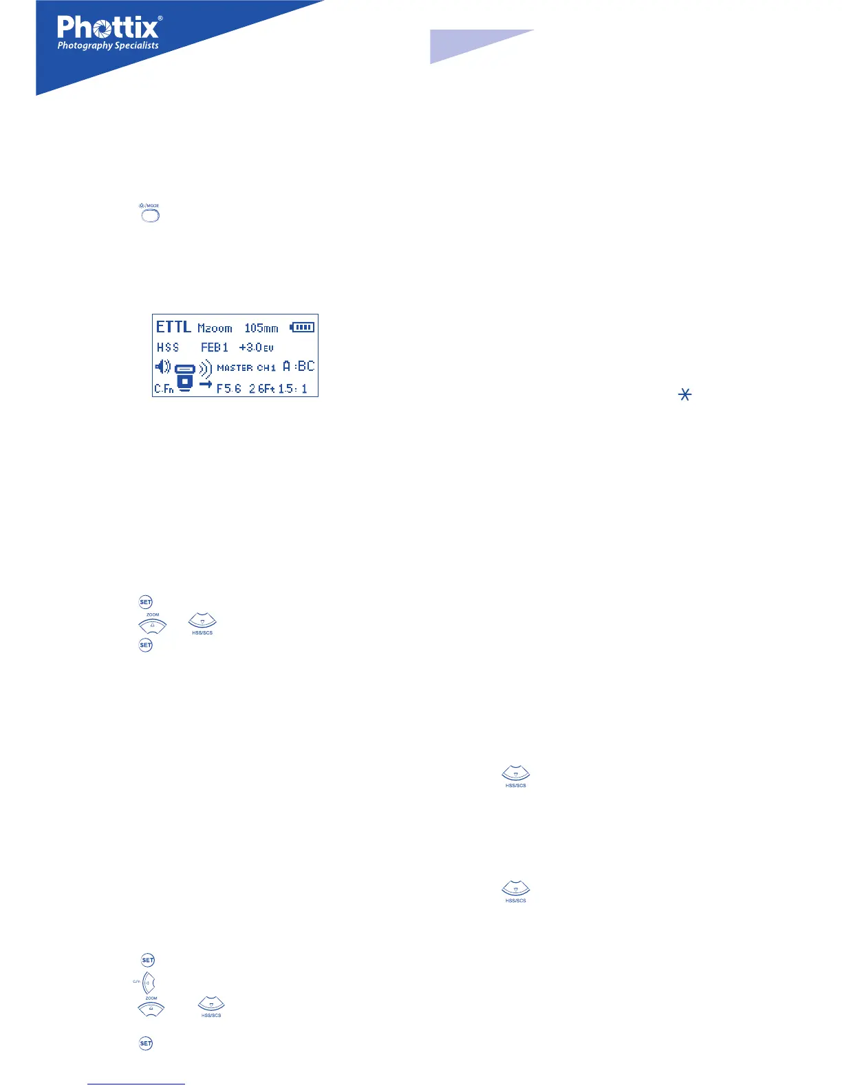 2. The ash modes will cycle through ETTL, Manual (M) and Multi modes.