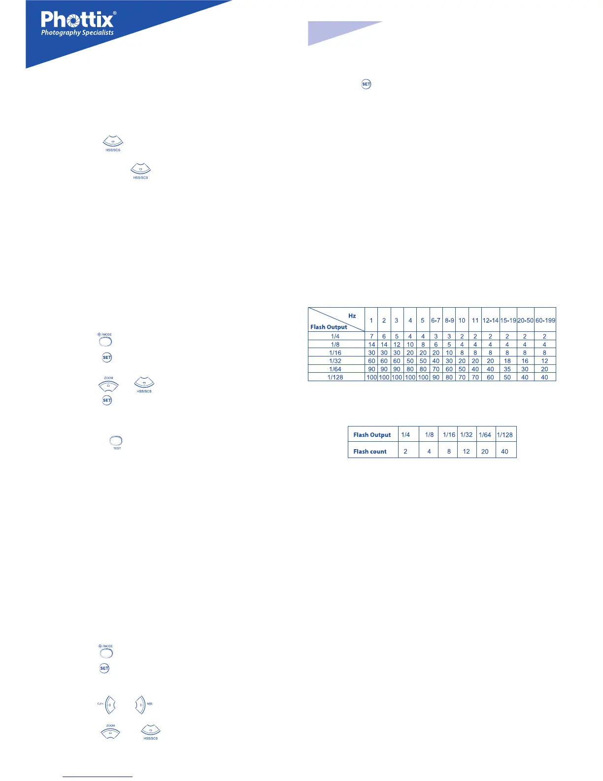 on the LCD) Power, Frequency (HZ) and Flash Count. Power is highlighted and