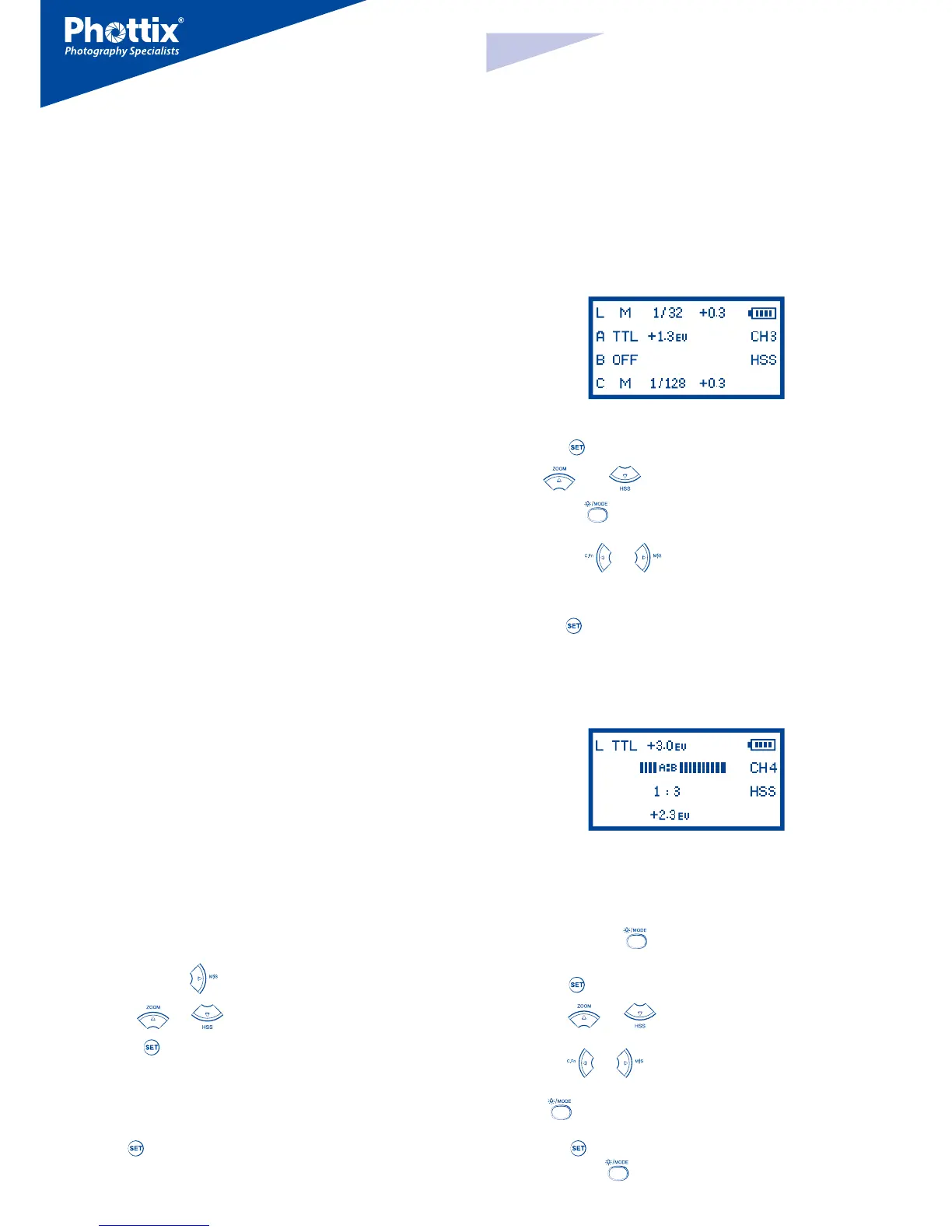 TTL or Manual Mode as well as control three groups (A, B, C) – adjusting TTL and