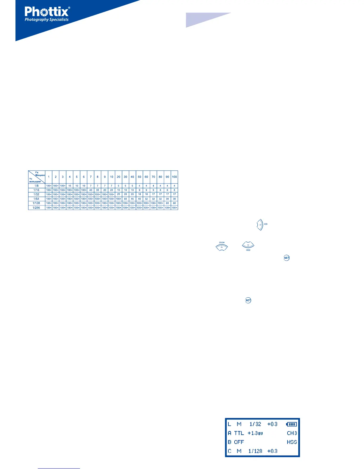 Пример: 5x (количество вспышек) / 10 Гц (Частота) = .5 секунды выдержка