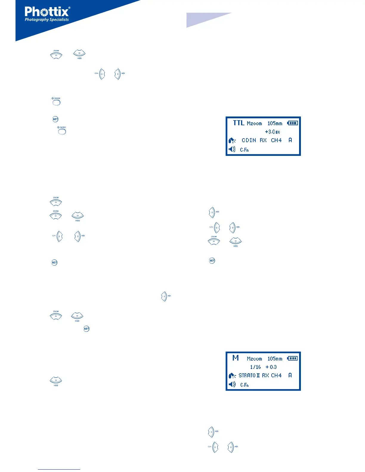 發射模式下的Mitros+閃光燈或ODIN發射器控制和觸發。