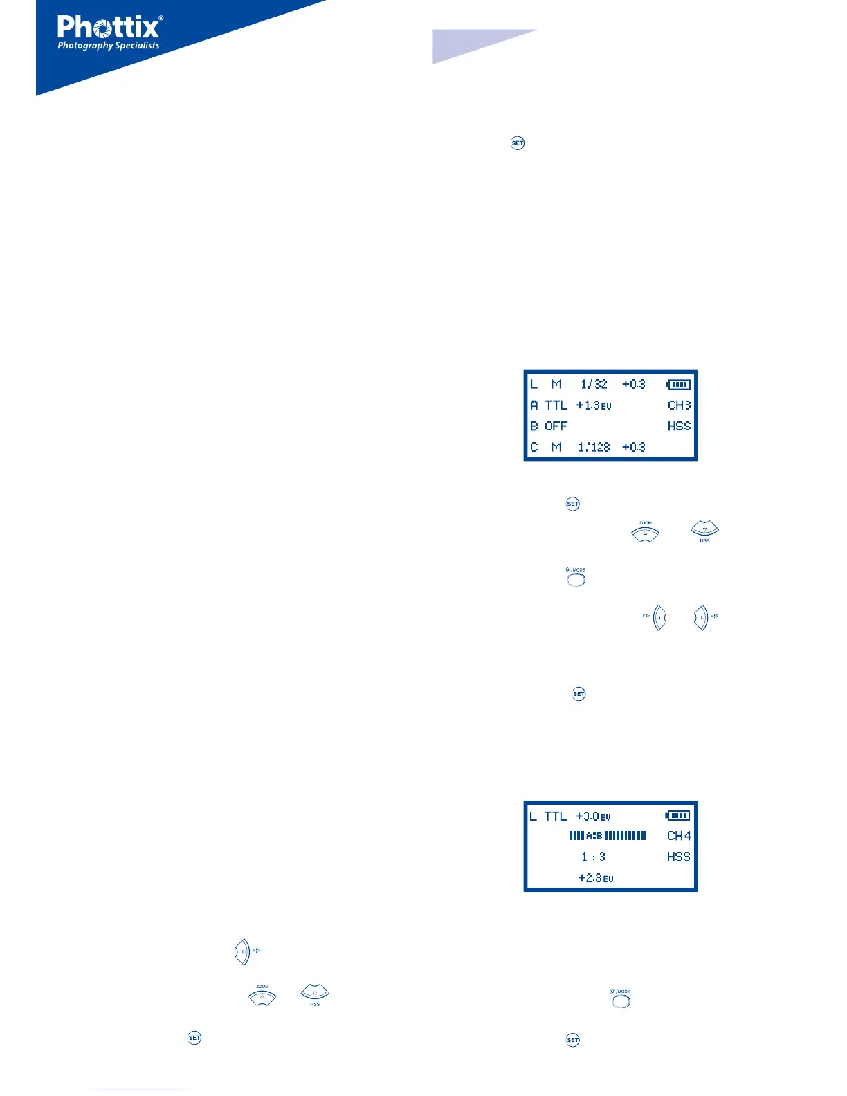 incréments de 1/3 IL en mode TTL ou bien de modifier la puissance du flash