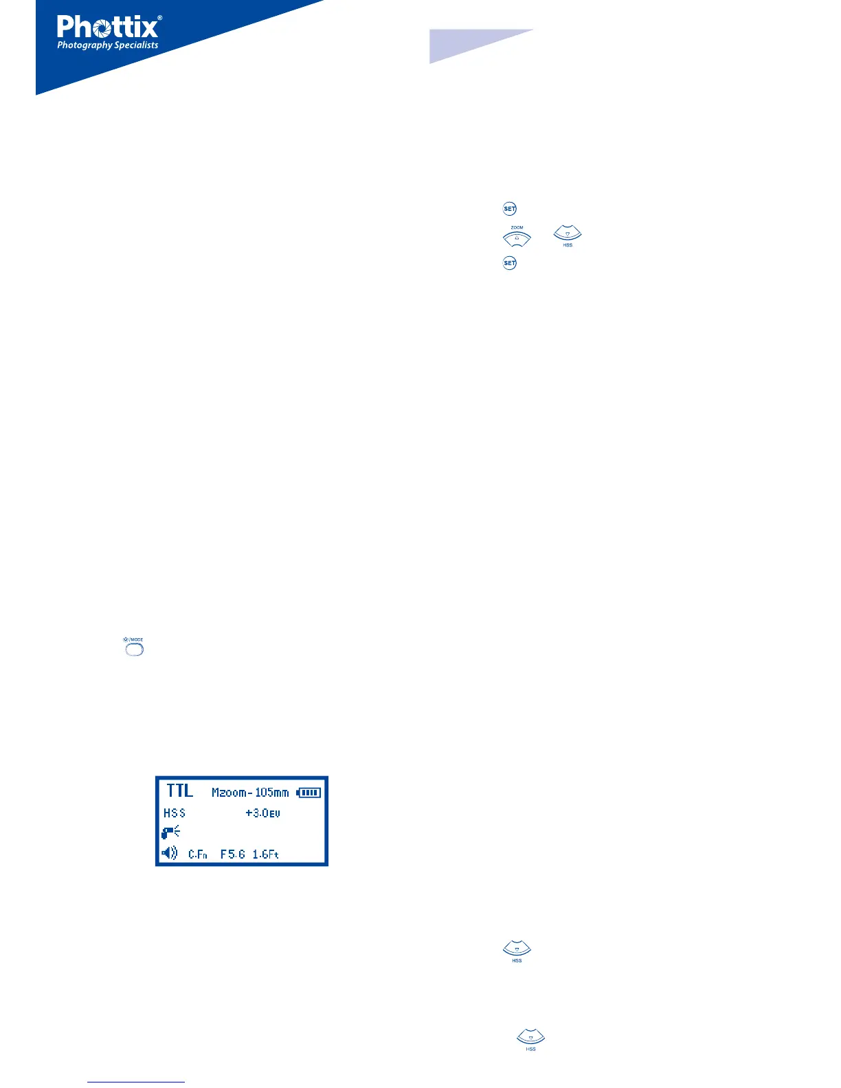 2. The flash modes will cycle through TTL, Manual (M) and Multi modes.