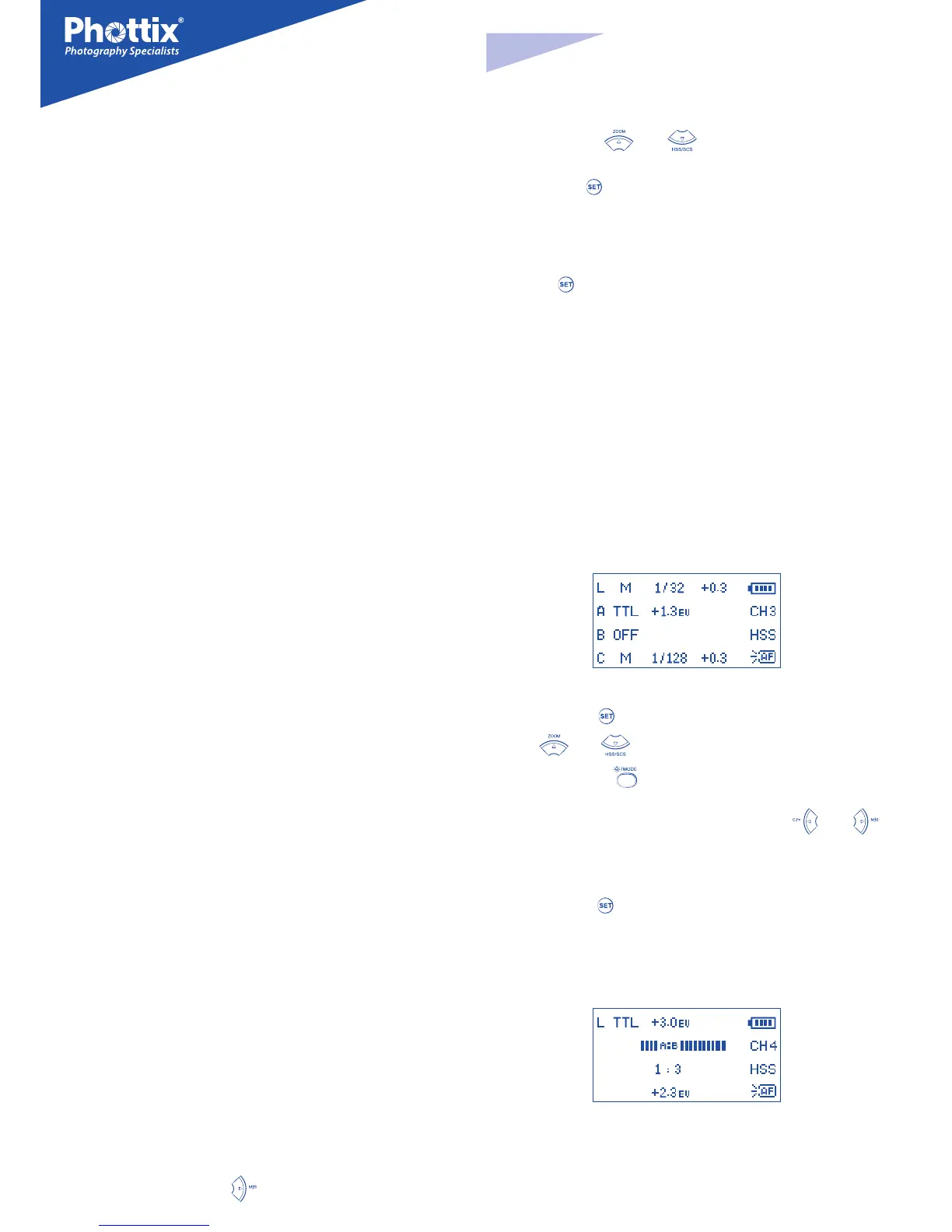 Gruppen (A, B, C) und Anpassung von TTL und manuellen Leistungsstufen, sow-