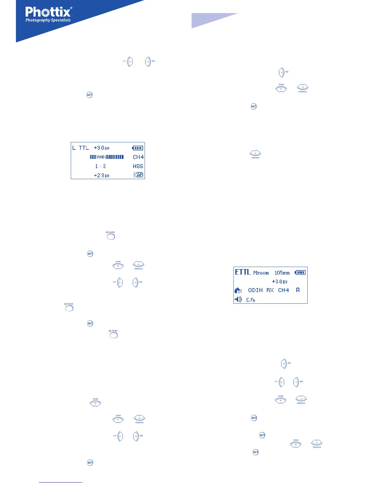 incréments de 1/3 IL en mode TTL ou bien de modier la puissance du ash