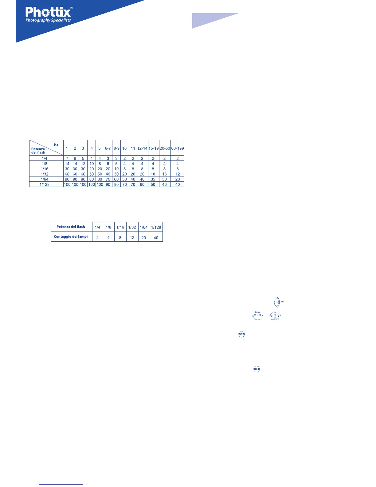 Esempio: 5 x (numero di lampi) / 10 Hz (frequenza) = 0,5 secondi velocità dell’ot-
