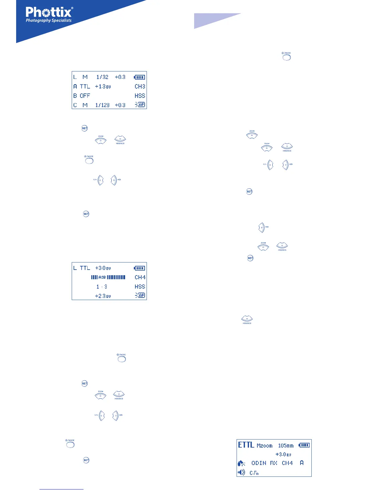 TTL oppure di regolare il livello di potenza ash (da 1/128 a 1/1, in 1/3 di stop)