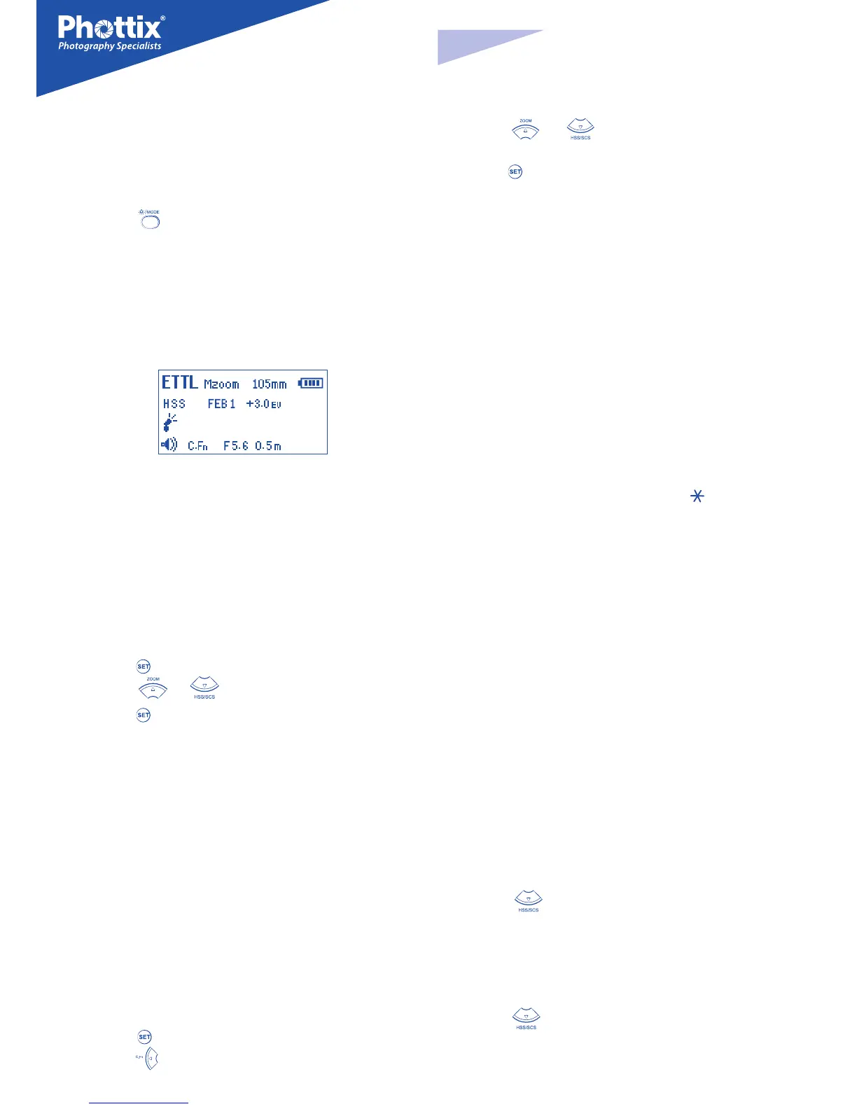 2. The ash modes will cycle through ETTL, Manual (M) and Multi modes.