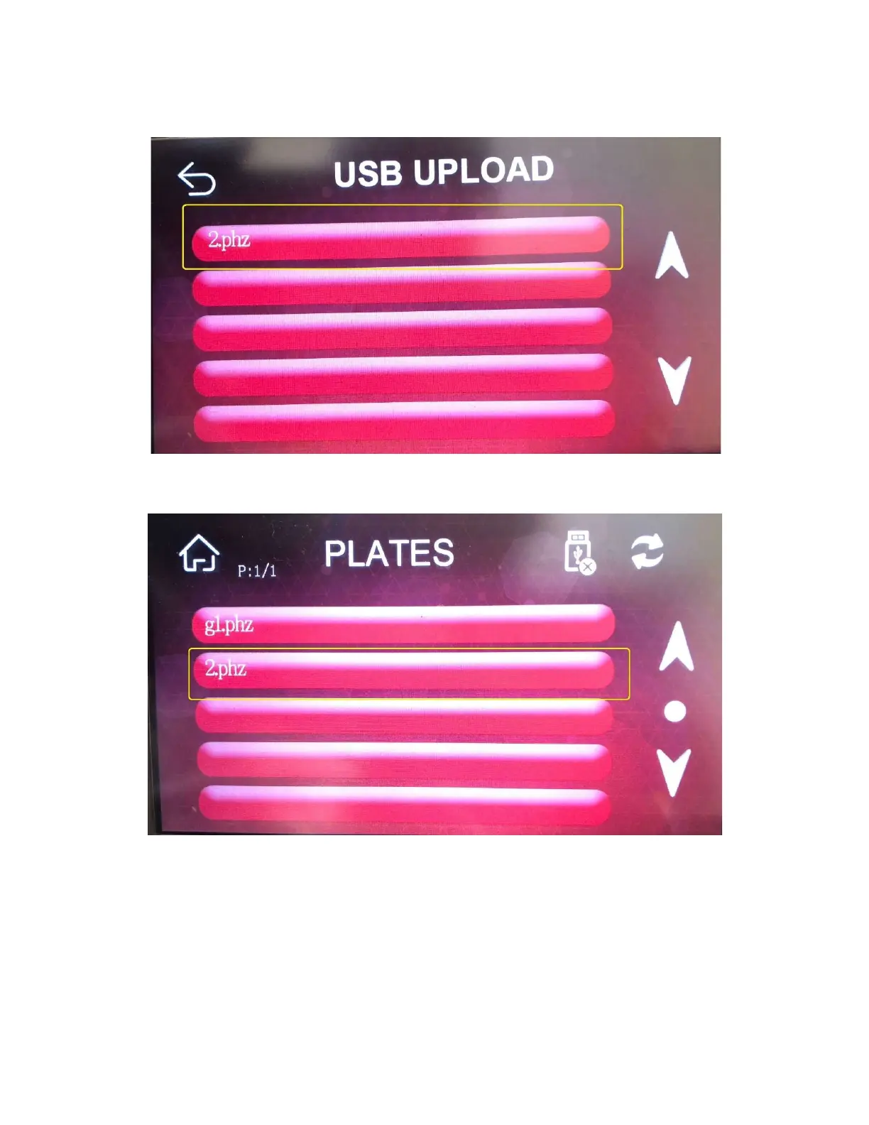 The file will be displayed on the PLATES screen
