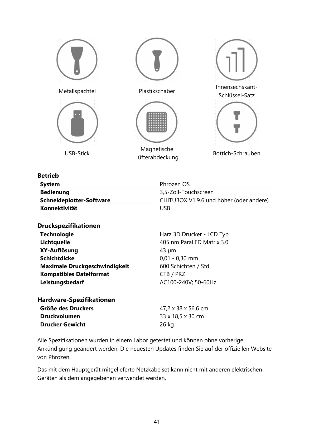 Alle Spezifikationen wurden in einem Labor getestet und können ohne vorherige