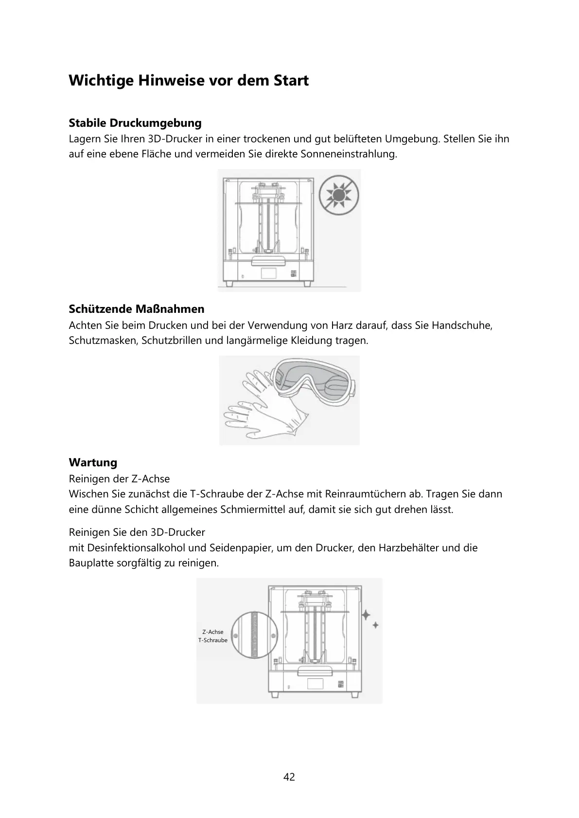 Lagern Sie Ihren 3D-Drucker in einer trockenen und gut belüfteten Umgebung. Stellen Sie ihn