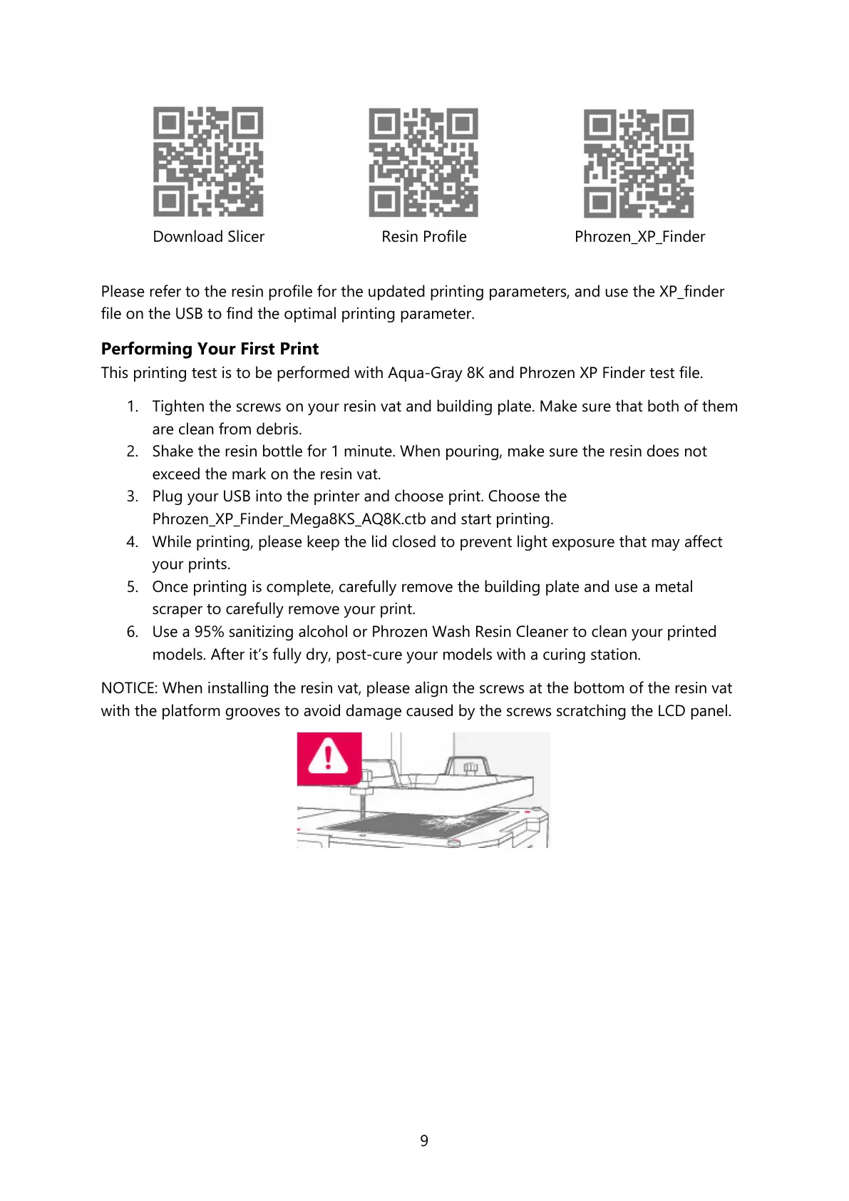 NOTICE: When installing the resin vat, please align the screws at the bottom of the resin vat