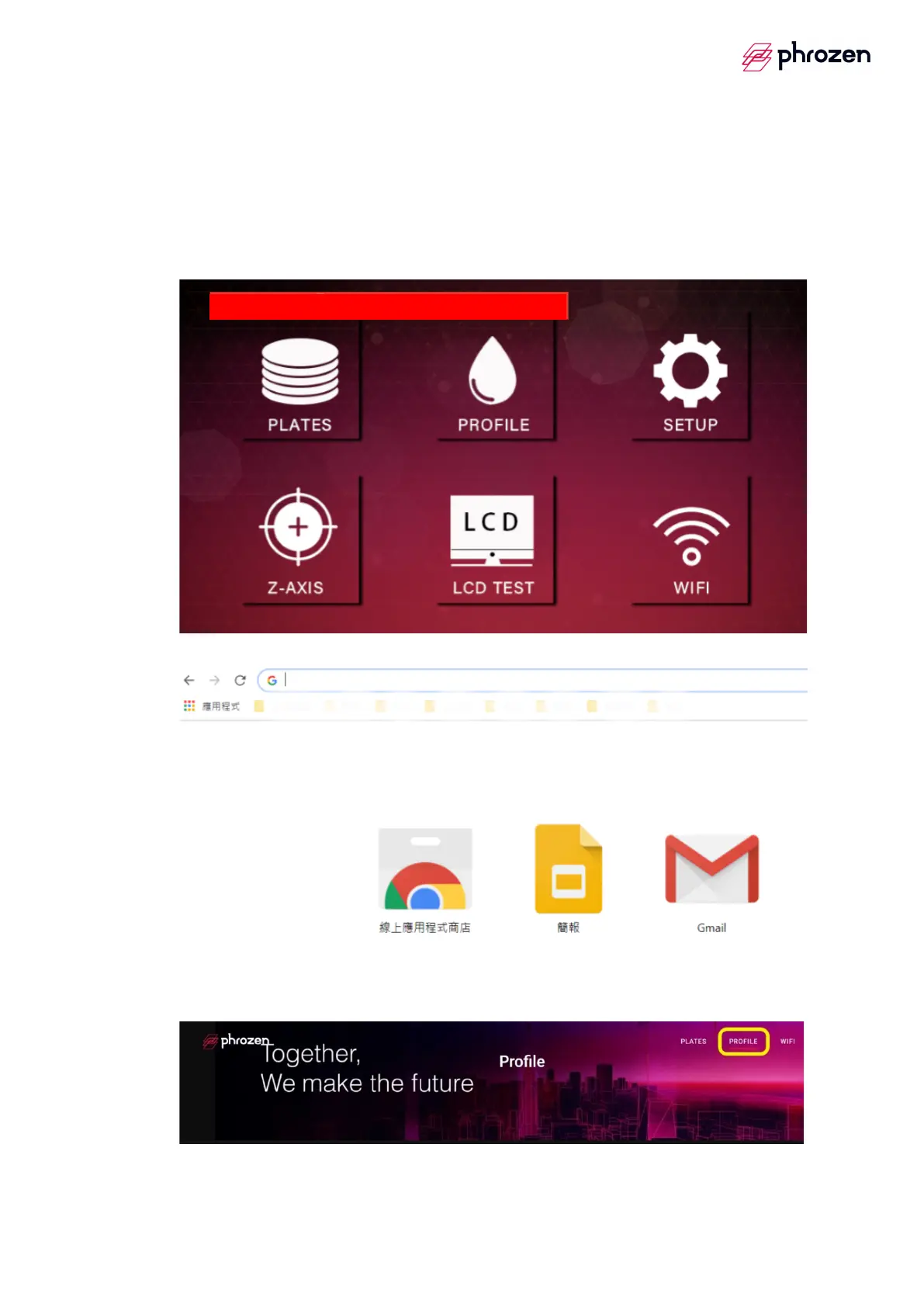 2. Input the IP address showed at the top of Phrozen OS display on your web
