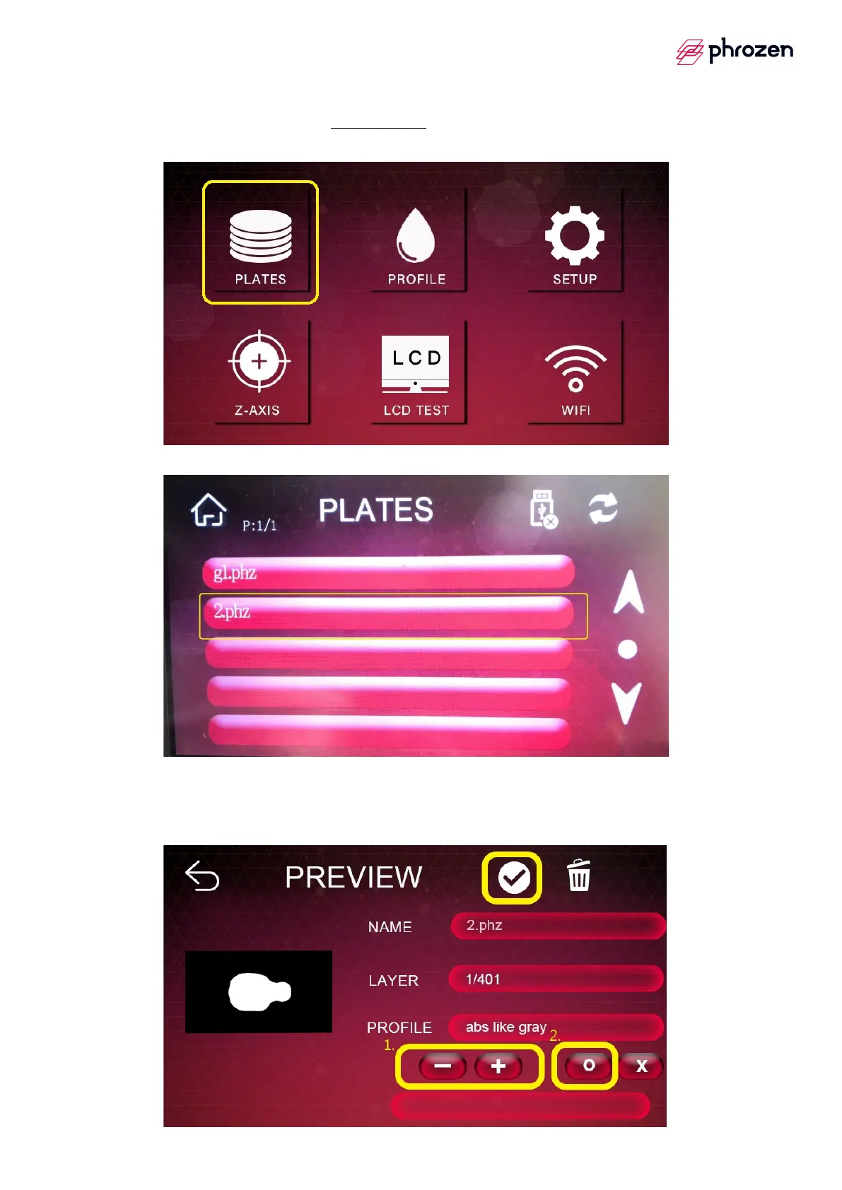 Ø Tips Resin profile can be manually adjusted by +/- and confirmed by O.
