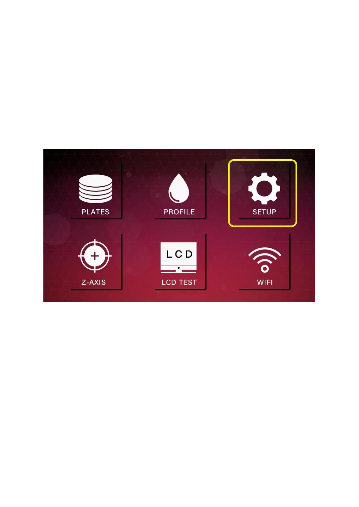 1. Touch the screen operation: On the main screen, click SETUP.