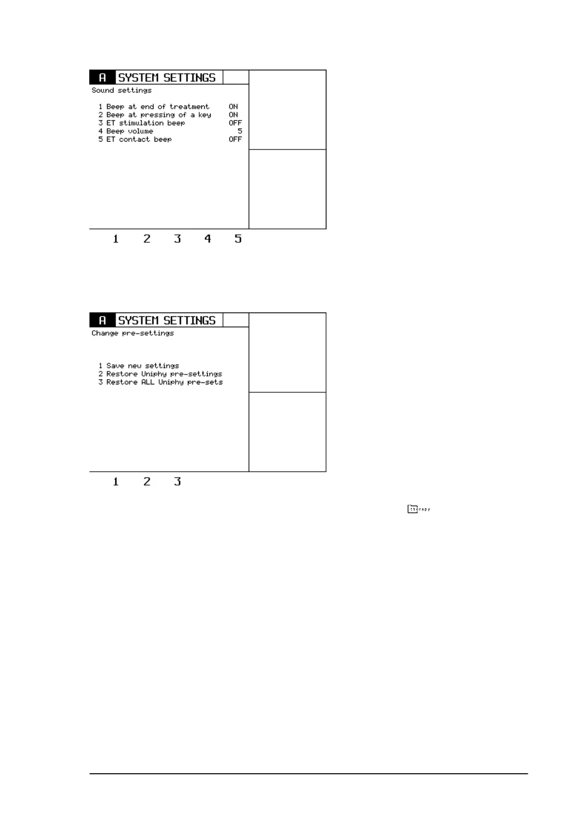 In order to restore the Uniphy pre-settings of one particular therapy, first select the therapy and then