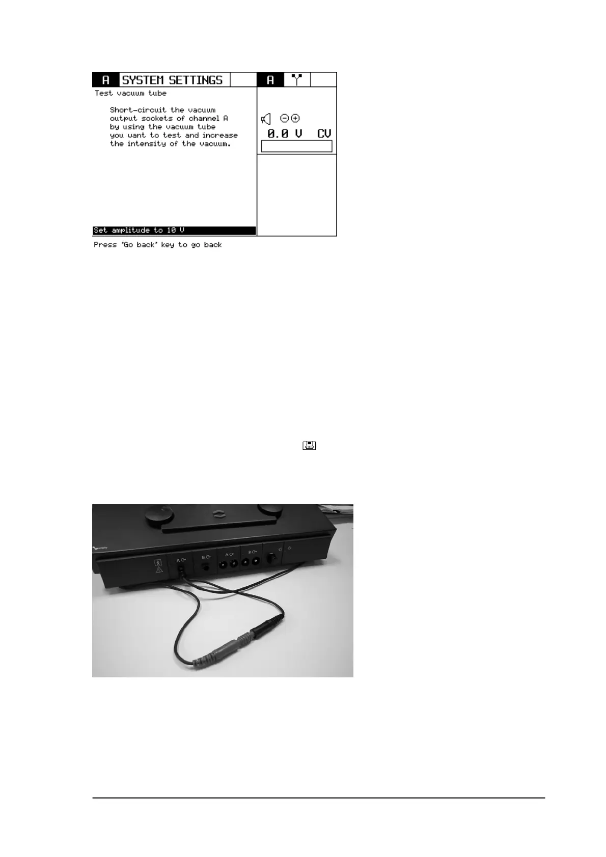 Connect the patient cable to the channel A (without the plate electrodes) and make a short-circuit