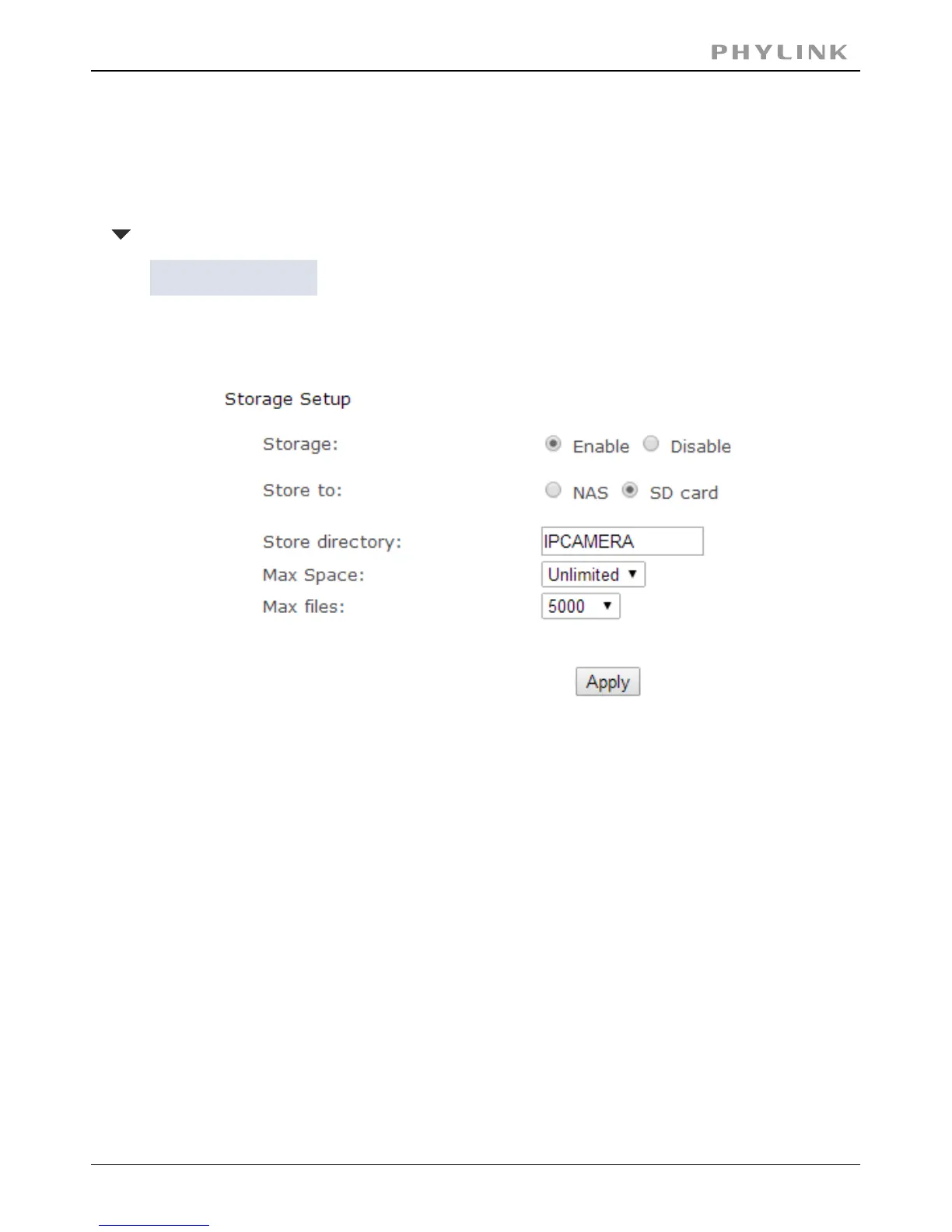 Phylink PLC-128PW - Storage Setup; 3.4.1 Storage Setup