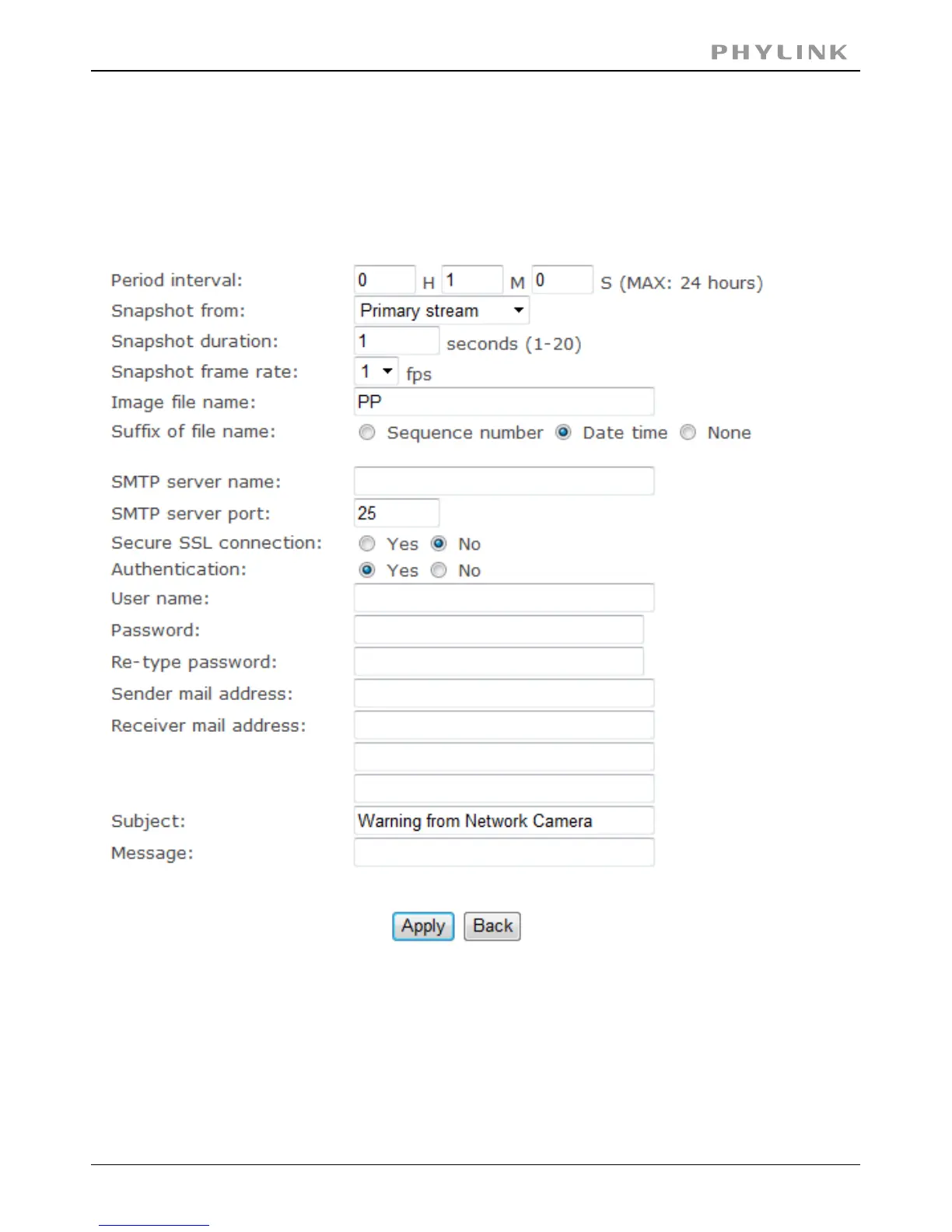 “Email Periodic sending”menu to upload pictures at regular time intervals.