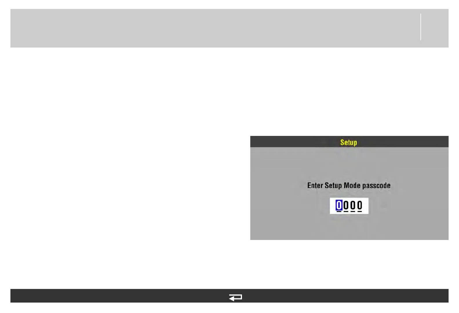 After the last digit is entered, the Setup menu appears.