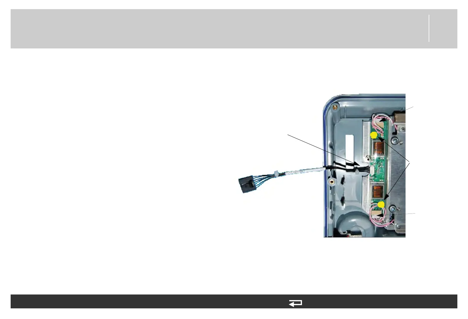 Figure 8.14—Screw location and cable connection for backlight PCB