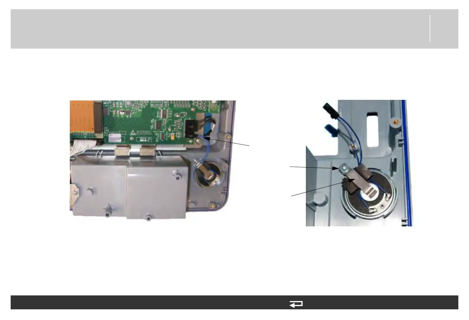 Figure 8.31—Speaker assembly replacement cable connection and screw location
