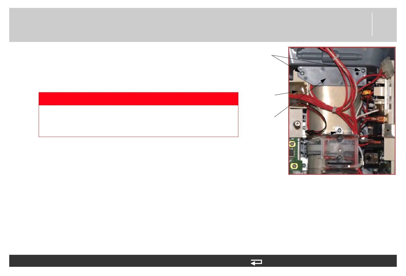 8. Lift the biphasic bracket up slightly to gain access to connector. Disconnect the red transfer relay lead spade connector from the