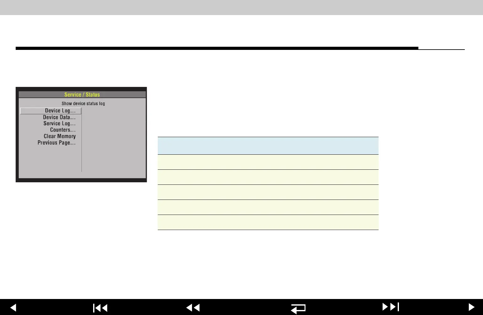 SERVICE/STATUS submenu, access the SERVICE menu and select