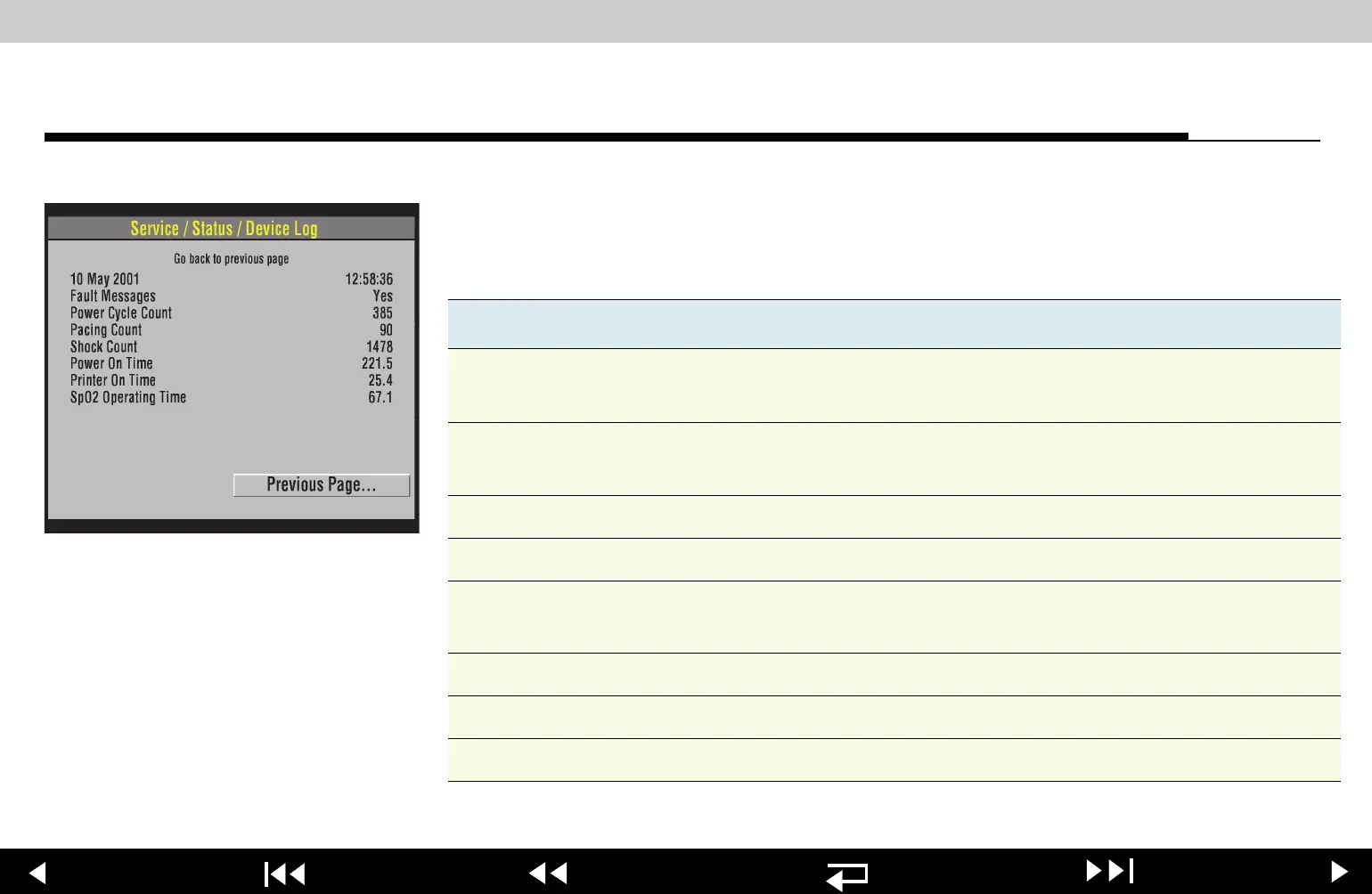 Device Log Select DEVICE LOG on the SERVICE/STATUS submenu to view essential device