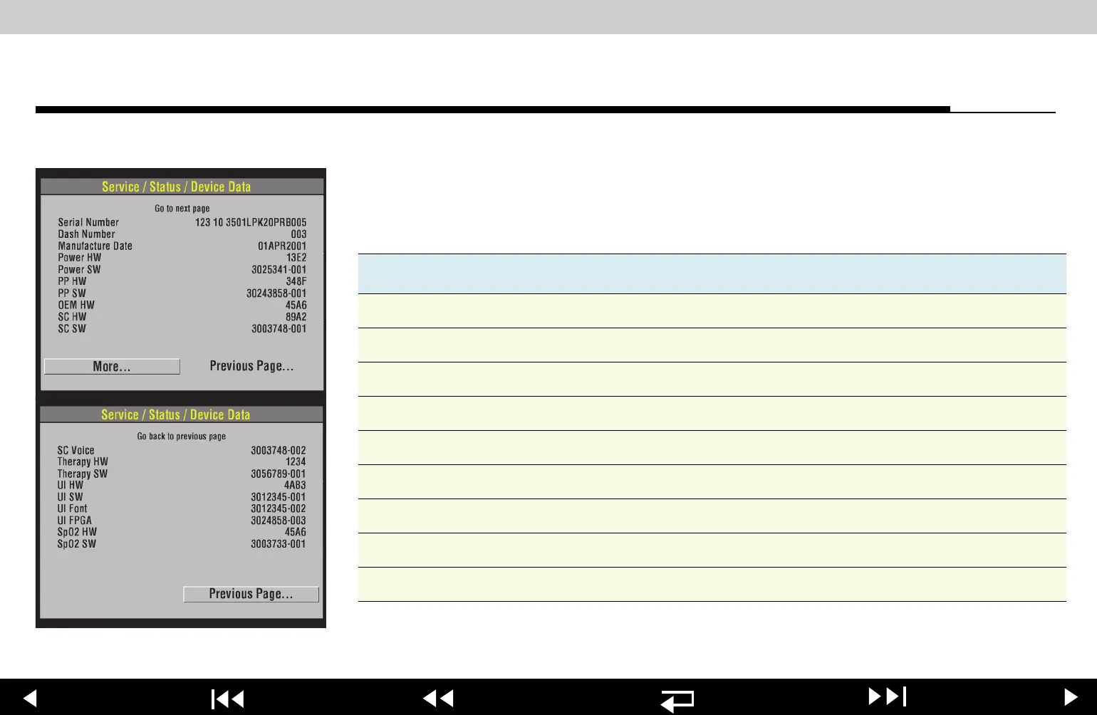 Device Data Select DEVICE DATA on the SERVICE/STATUS submenu to view essential device