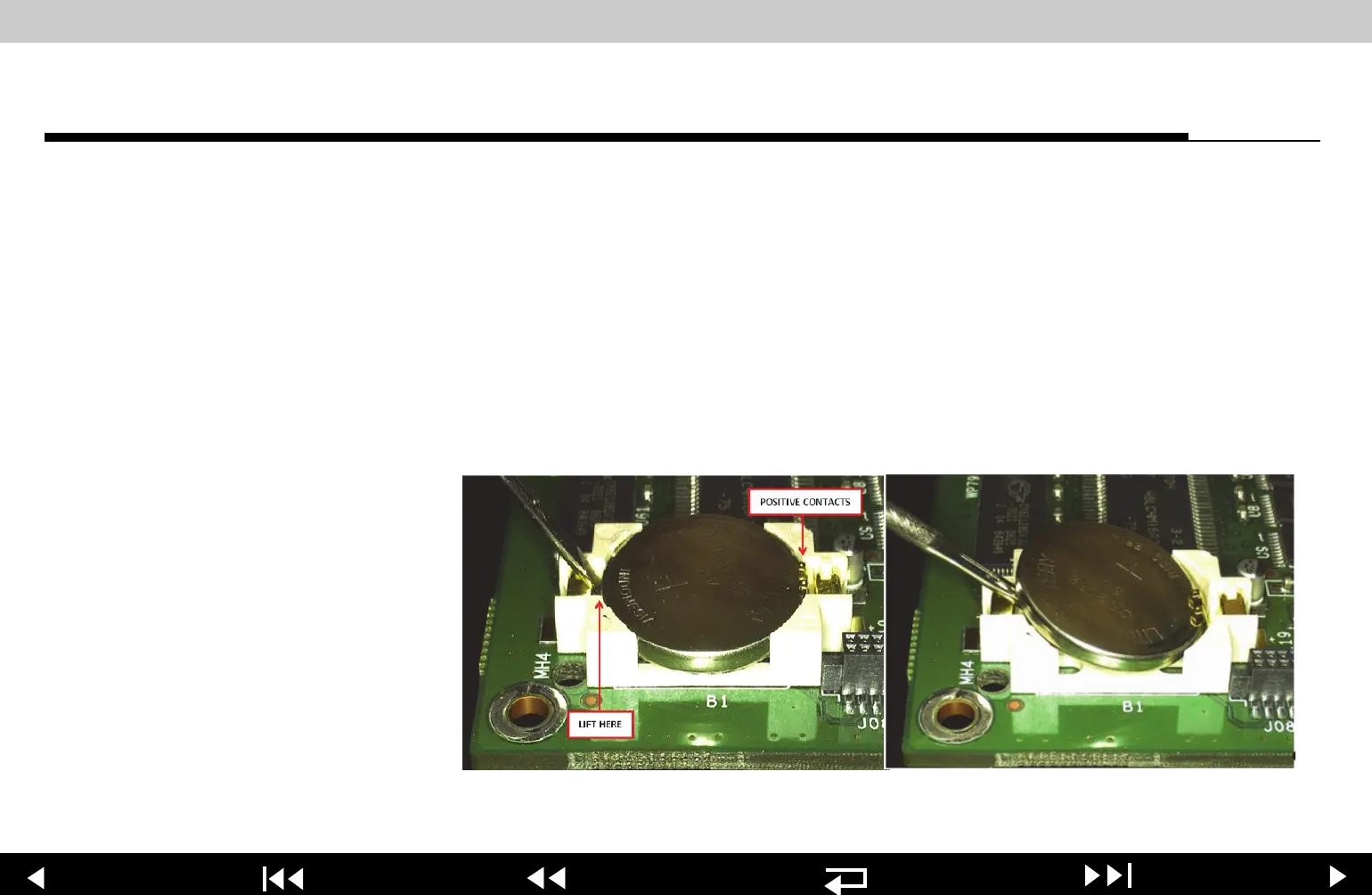1. Push battery gently toward the positive side of battery holder while using a