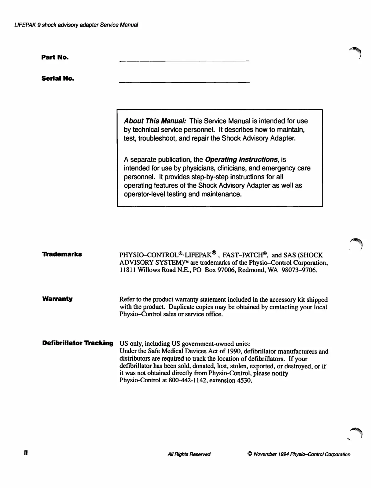 Other manuals for Physio Control LIFEPAK 9