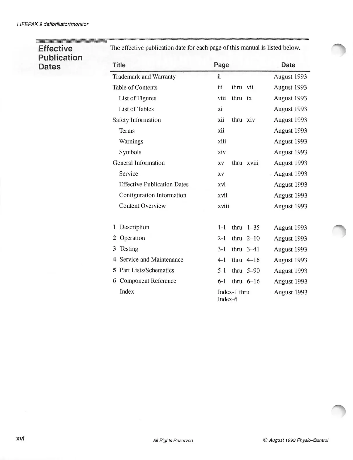 Physio Control LIFEPAK 9 - Effective Publication Dates