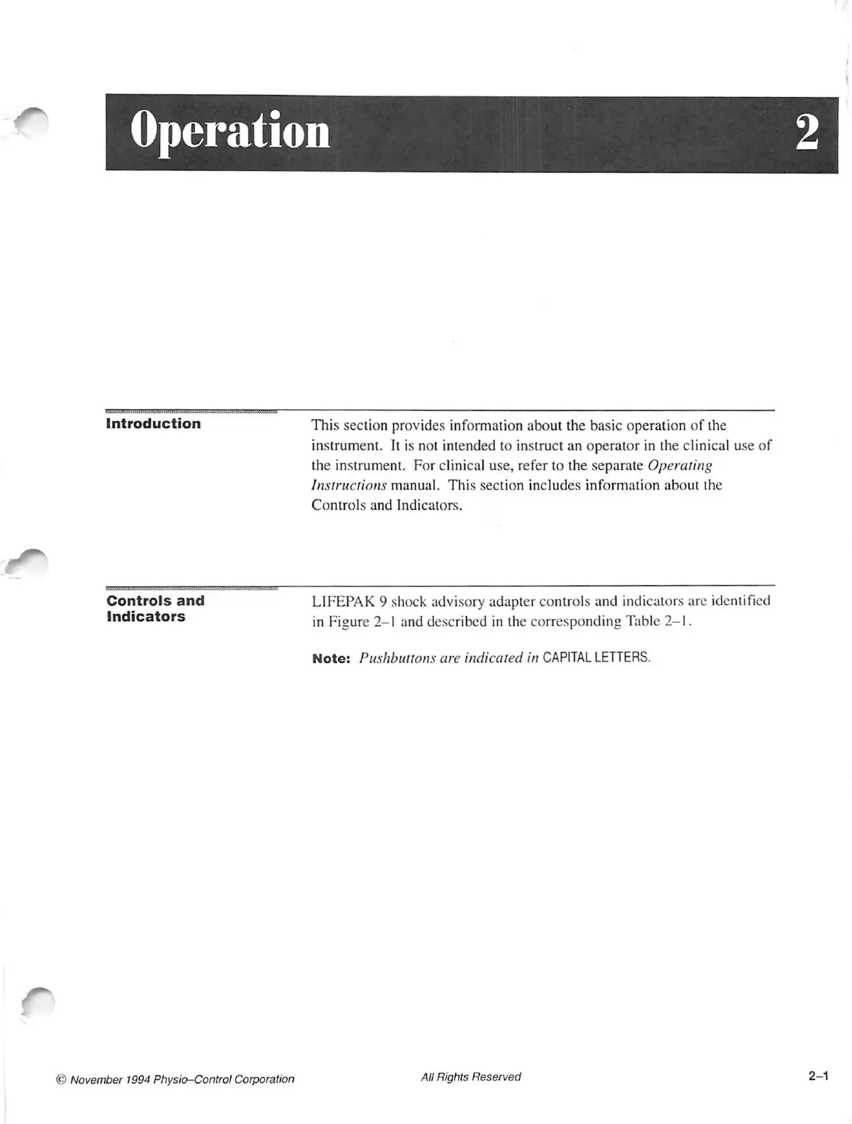 Physio Control LIFEPAK 9 - Controls and Indicators; Introduction; Operation