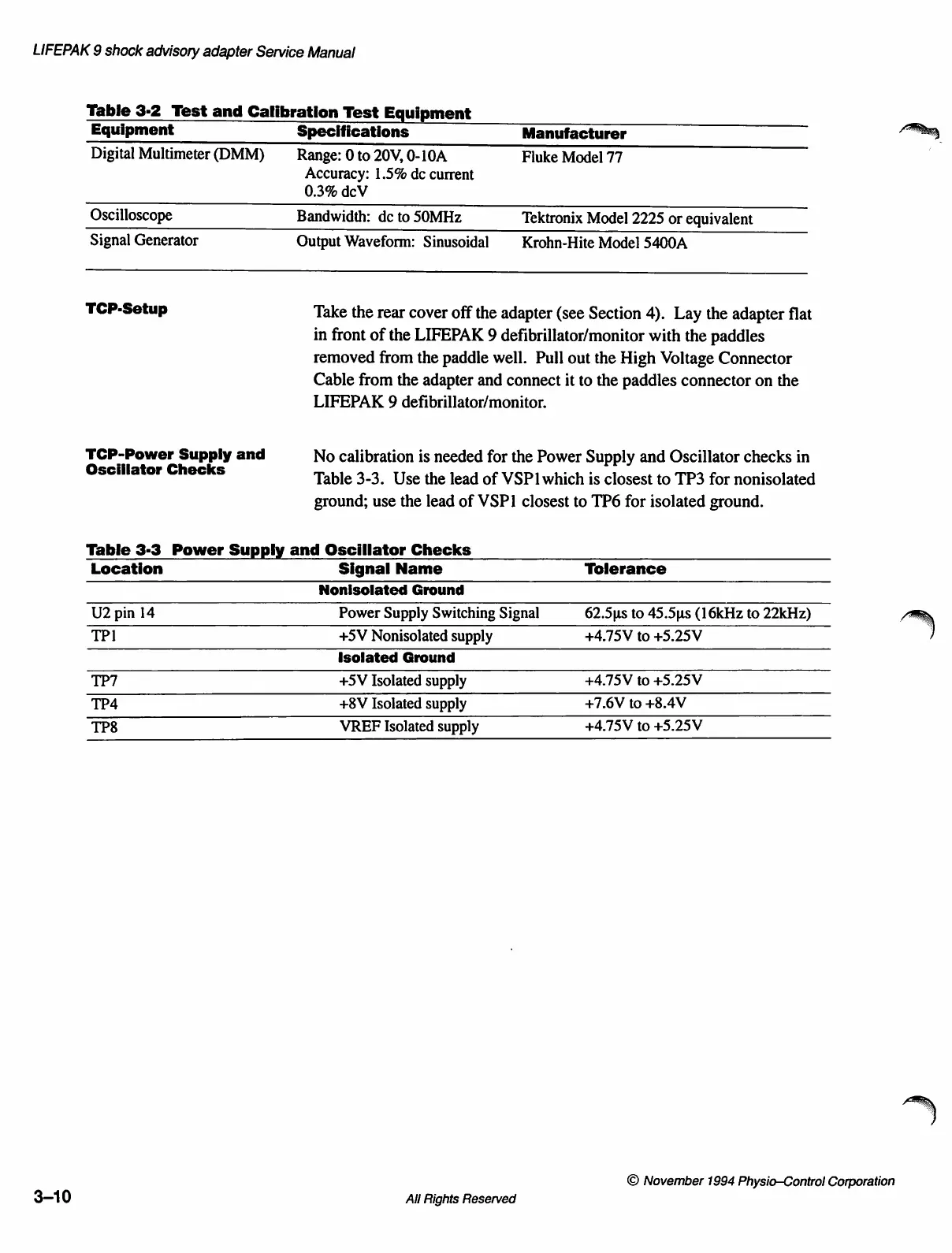Physio Control LIFEPAK 9 - TCP-Power Supply and Oscillator Checks