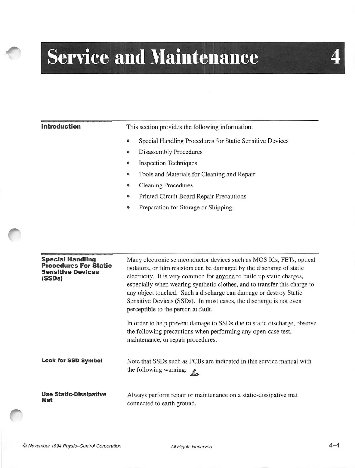 Physio Control LIFEPAK 9 - Introduction; Special Handling Procedures for Static Sensitive Devices (Ssds); Use Static-Dissipative Mat