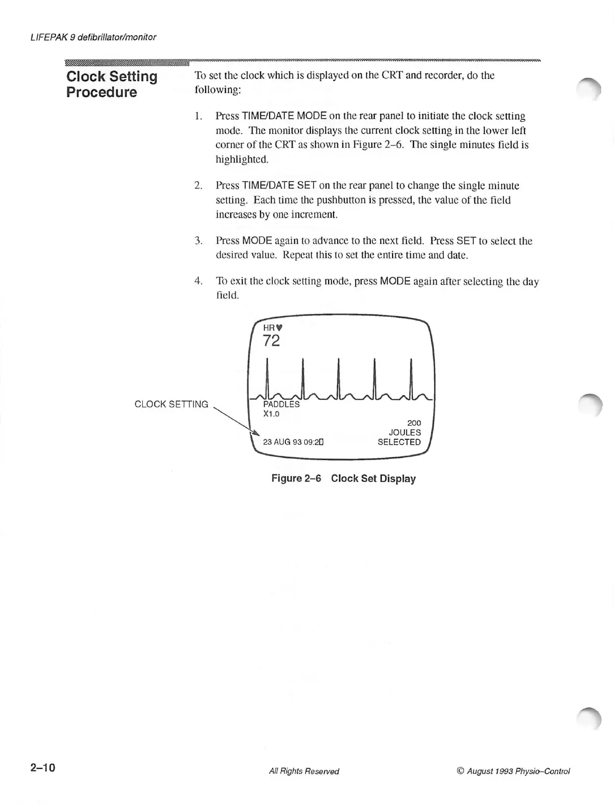 Physio Control LIFEPAK 9 - Clock Setting Procedure