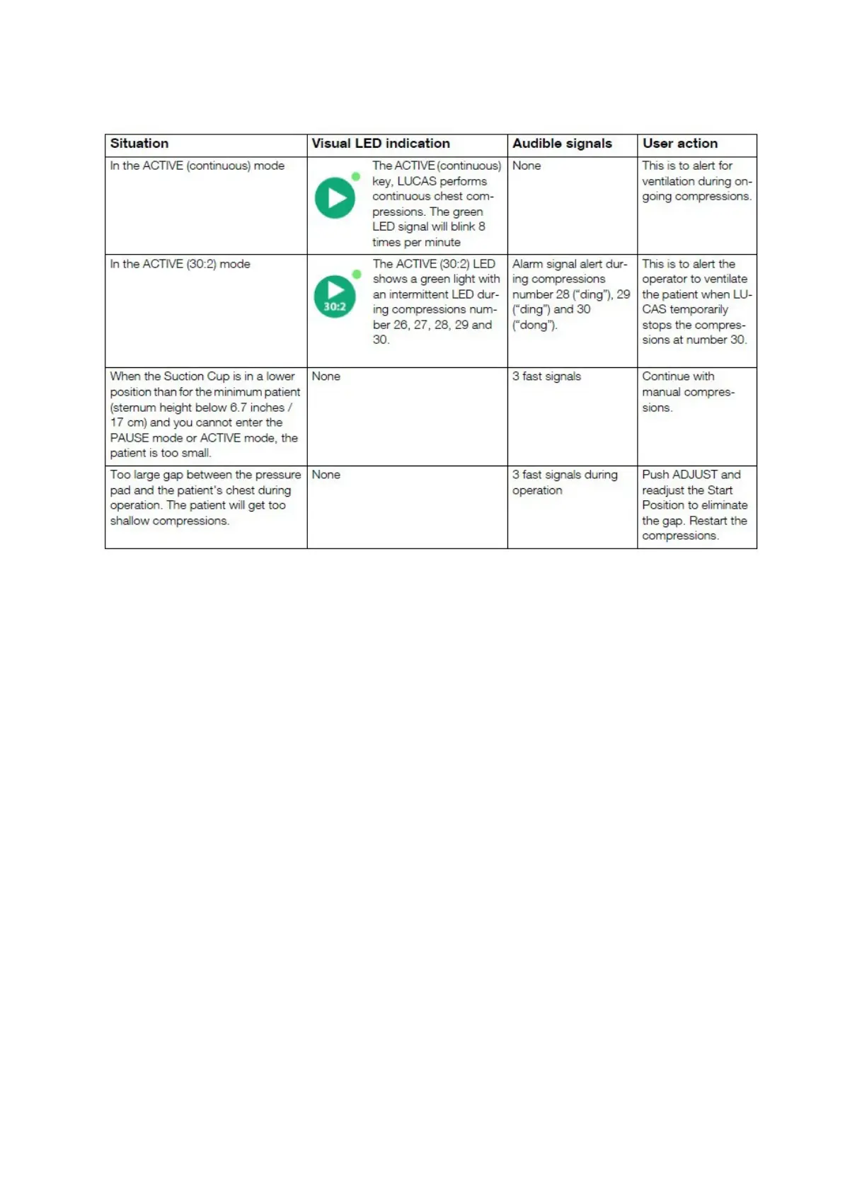 Figure 5.1-2: Table 2/2Indications and alerts during normal operation LUCAS 2.0 and