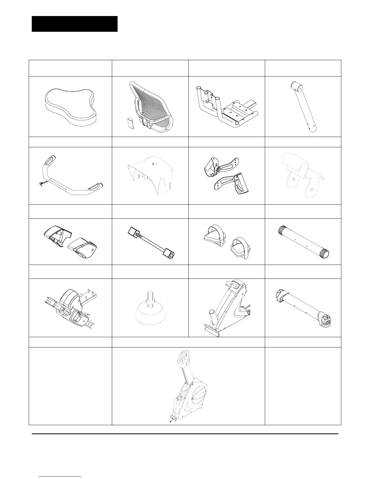 PhysioCycle XT-800 - Assembly Parts Identification; List of Major Components