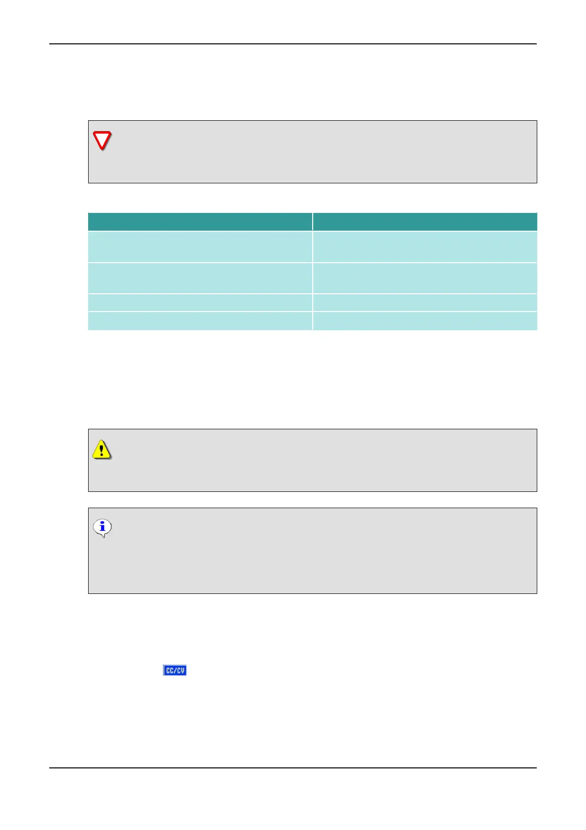 When switching off the instrument, the selection is set back from CV operation to CC opera-