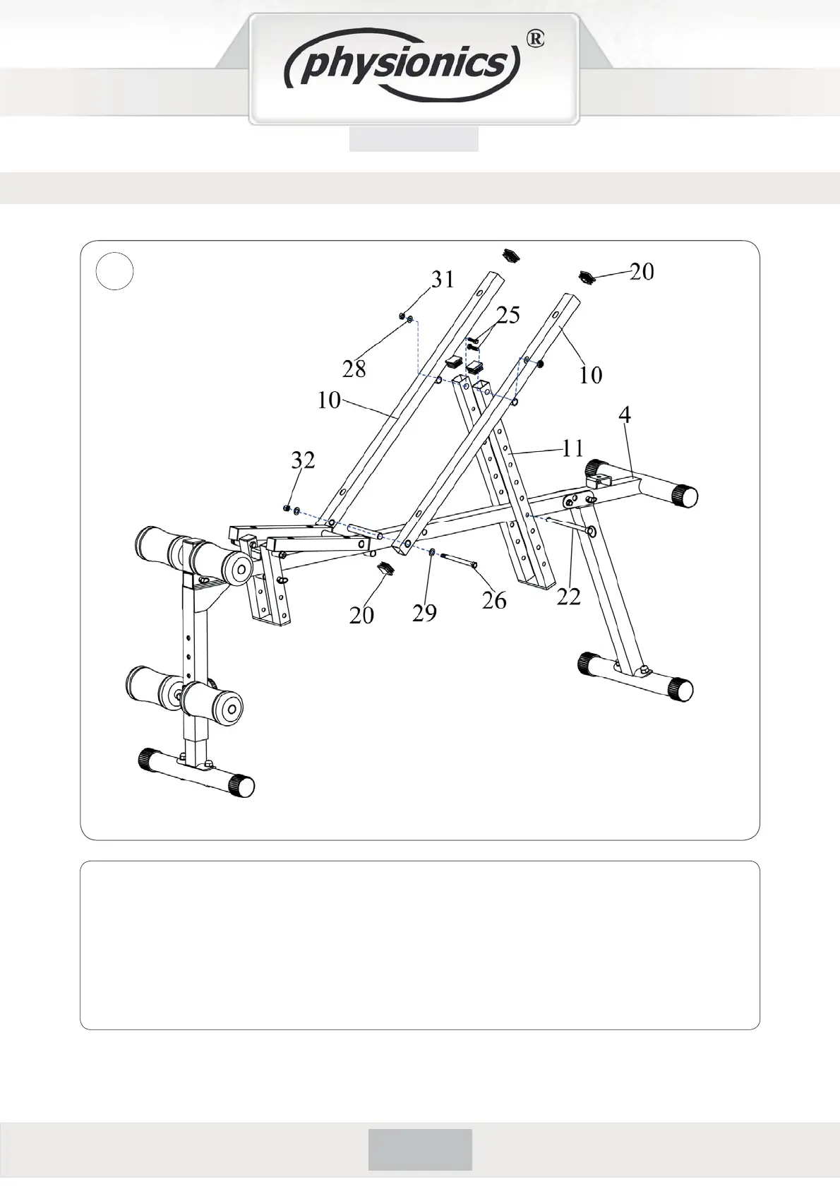 2. 2. Fije las barras del respaldo (10) a la barra principal (4), con un tornillo (26), dos arandelas (29),