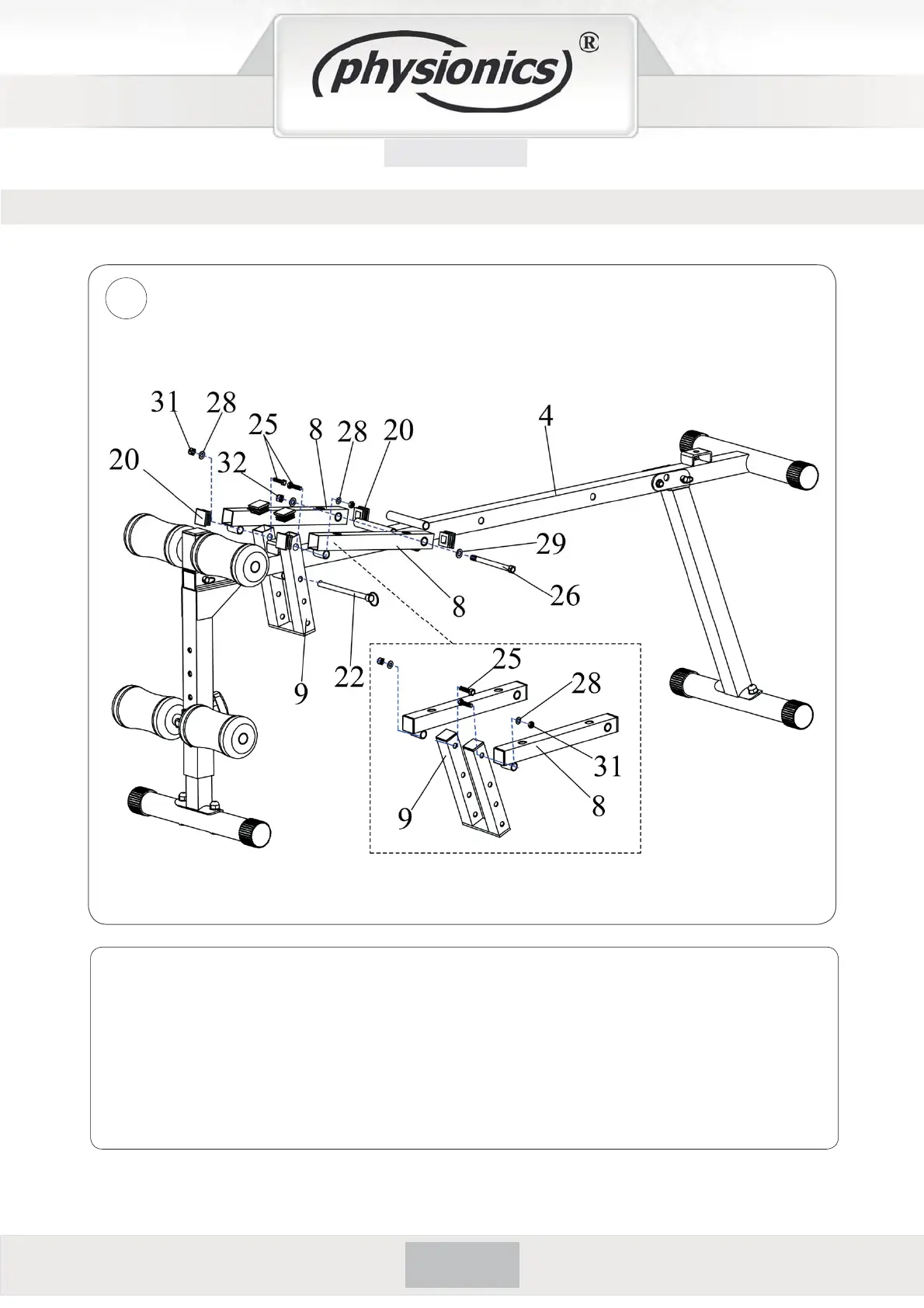 kantschraube (26 - 1 Stück), Unterlegscheiben (26 - 2 Stück) und der Sicherheitsmutter (32 - 1 Stück).