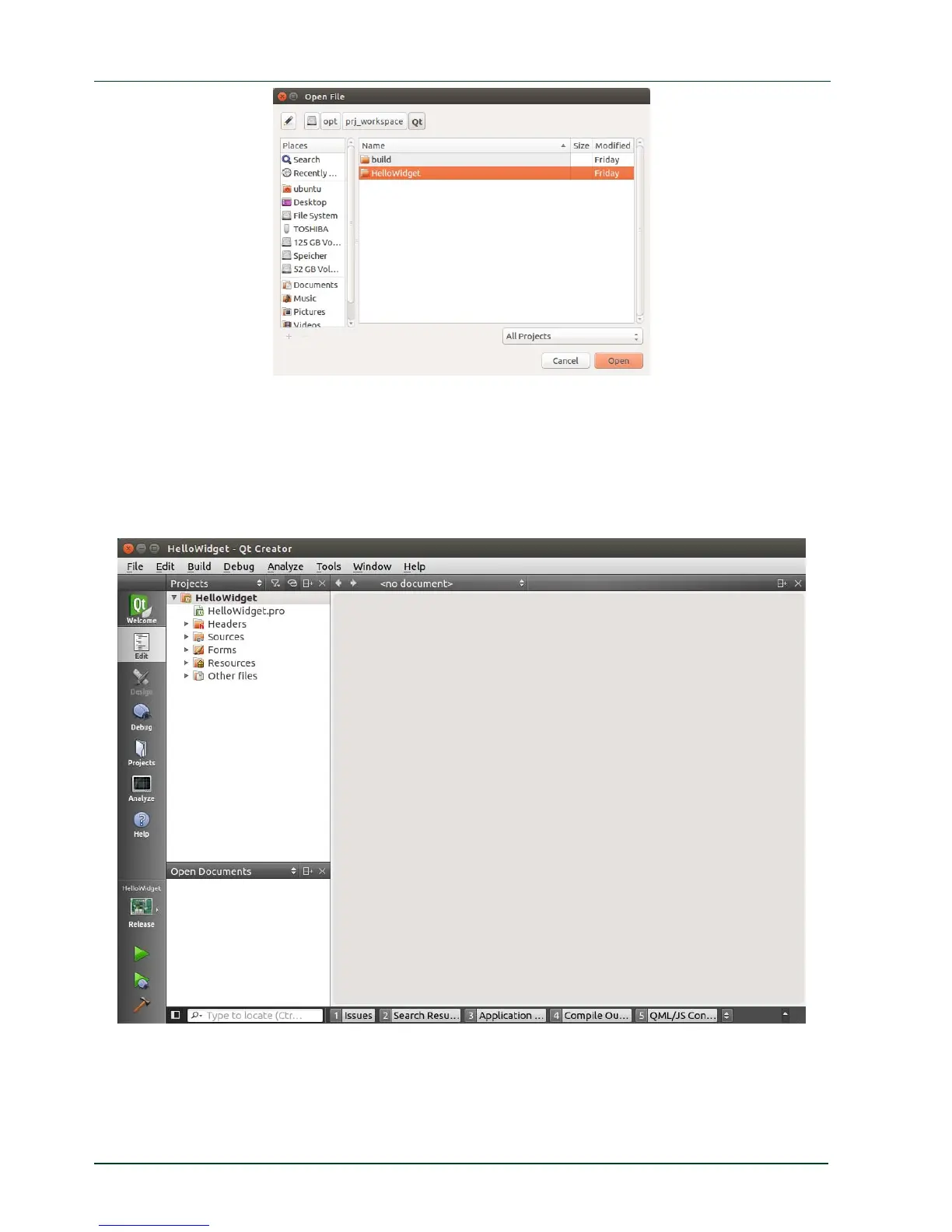 The HelloWidget project is now imported into your Qt Creator workspace.