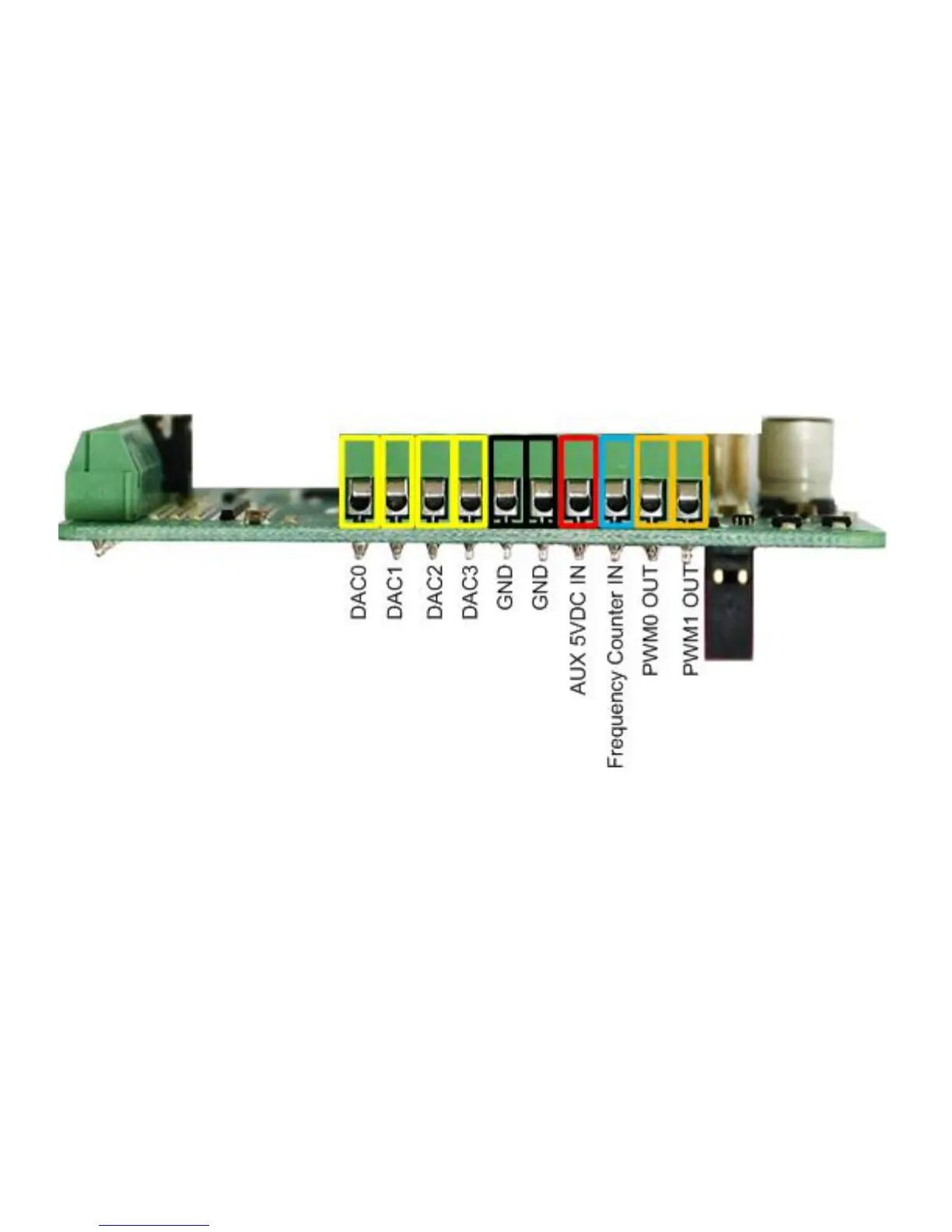 4. Two PWM outputs - these 10 bit resolution PWMs output a 5V digital waveform and can be set from 0
