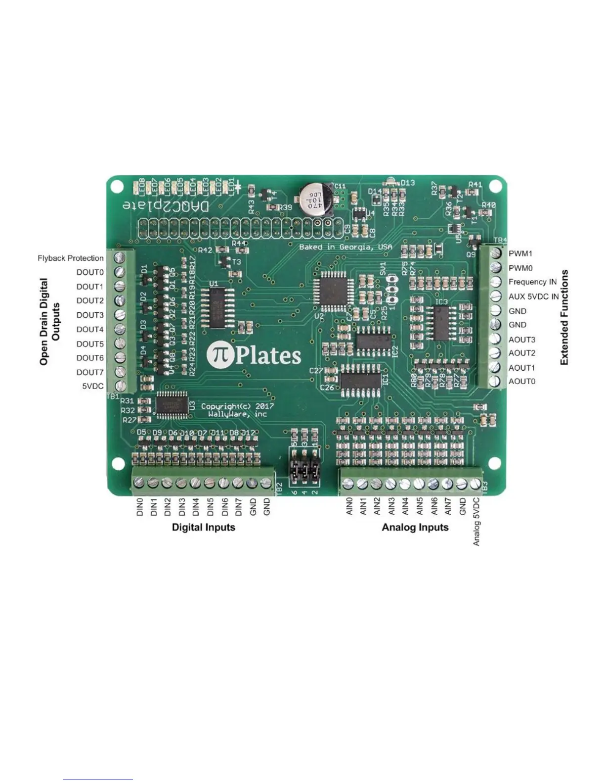 Pi-Plates DAQC2plate - Board Layout Diagram