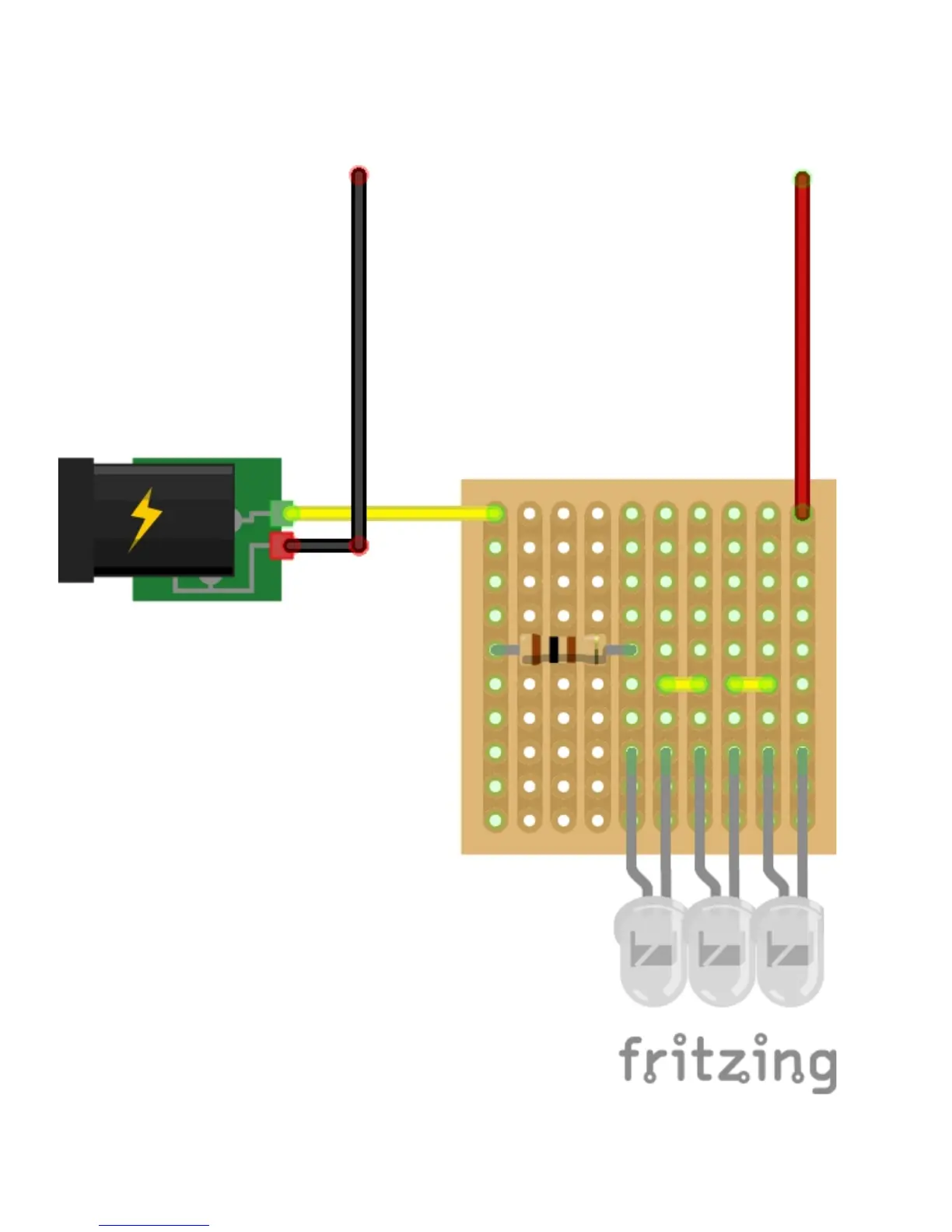 and then attach a 12VDC power supply with a center-positive connector. Then put a 100 ohm resistor between