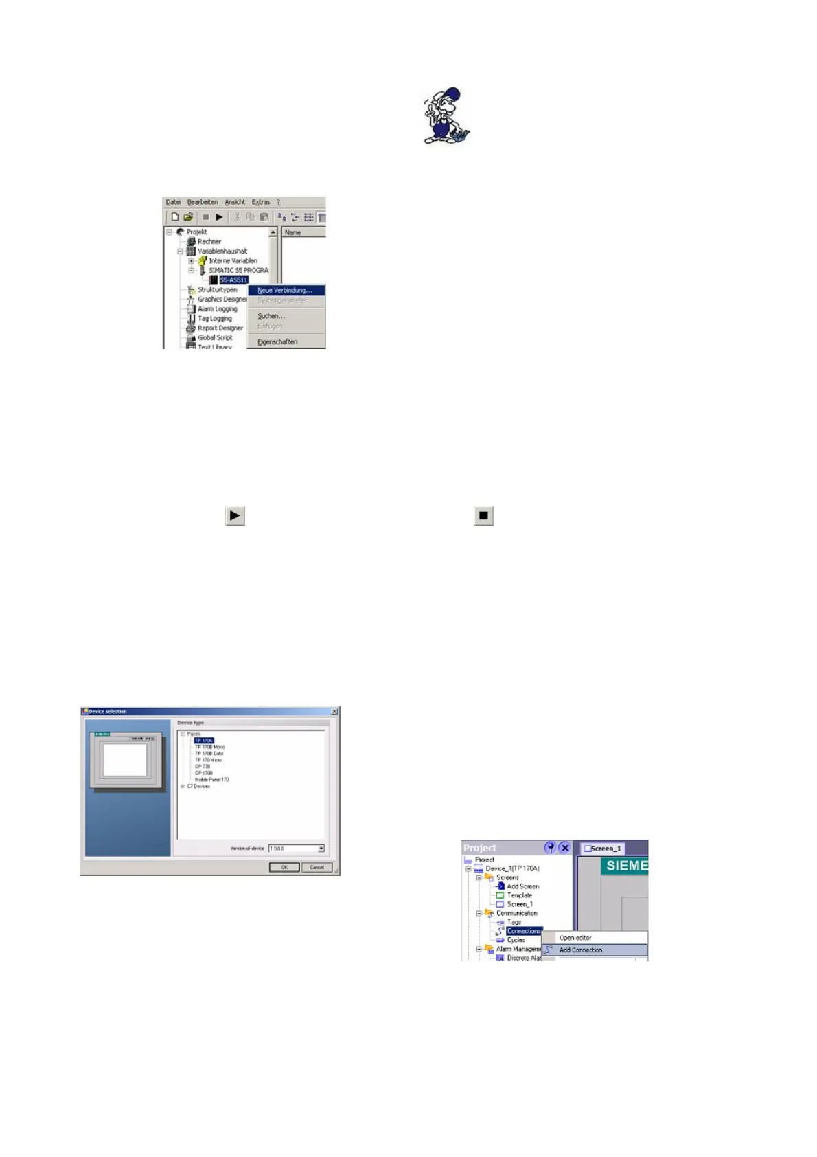 1. Start the WinCC flexibel 2004 software by using the desktop link or the program entry in the